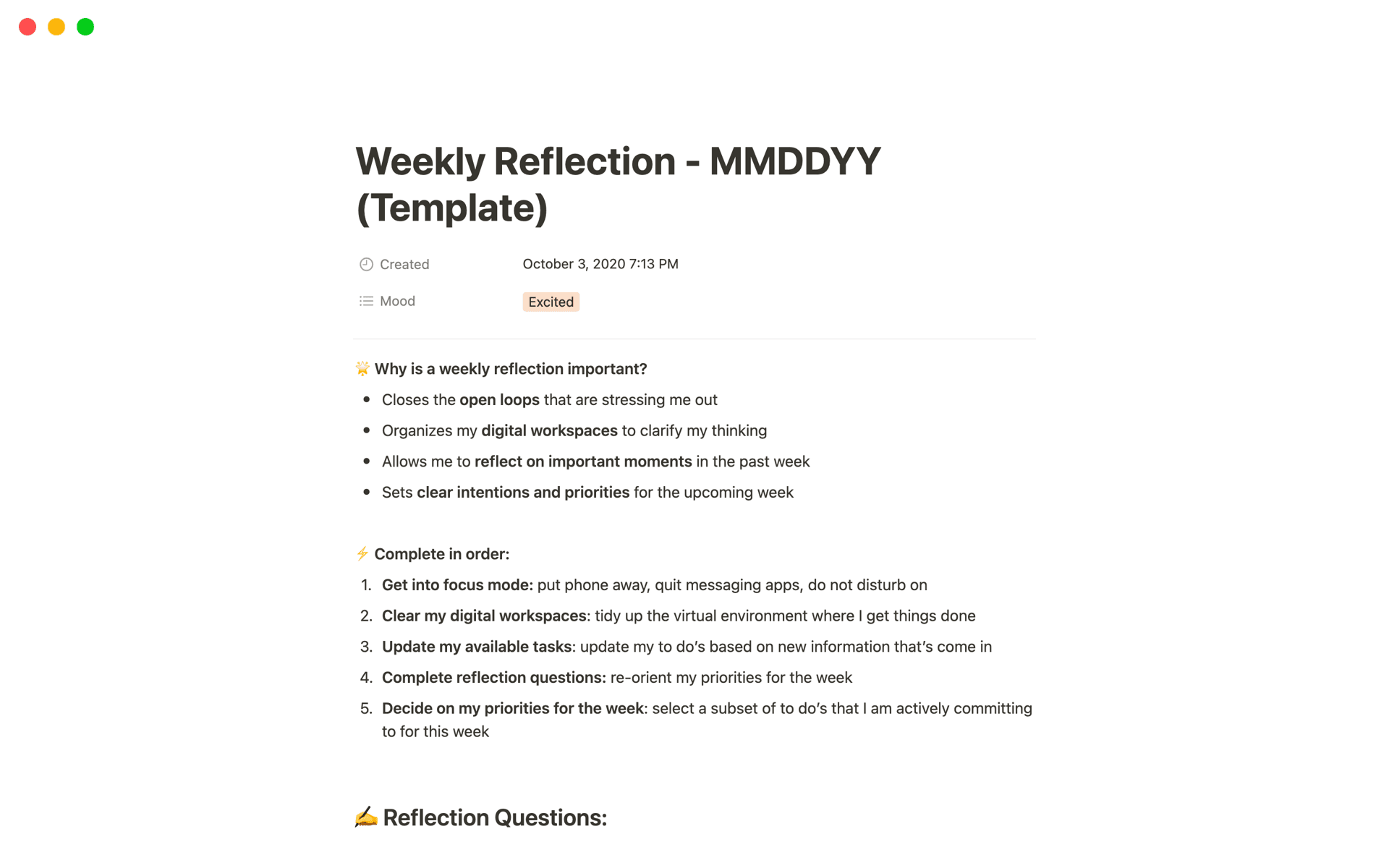 Free Self-Reflection Templates